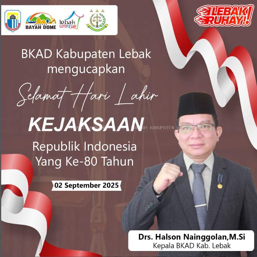 BKAD Kabupaten Lebak mengucapkan Selamat Hari Lahir Kejaksaan RI ke-80 Tahun.